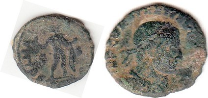 Follis de Constantin I au revers SOLI INVI-C-TO COMITI, le soleil debout à gauche levant la main droite et tenant un globe, de l'autre main
