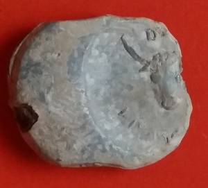 trouvé ce qui me semble être un plomb de scellé avec d'un coté un tête de bovin et de l'autre ce qui me semble être un A et un 6 ou 9 ...
