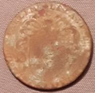 Je vous propose cette rondelle en cuivre de 5 grammes en l'état, elle mesure 27 mm de diamètre environ. Sur l'autre face, plus rien...