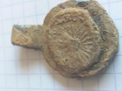 voici un gros plomb de sac avec fleurs de lys et soleil