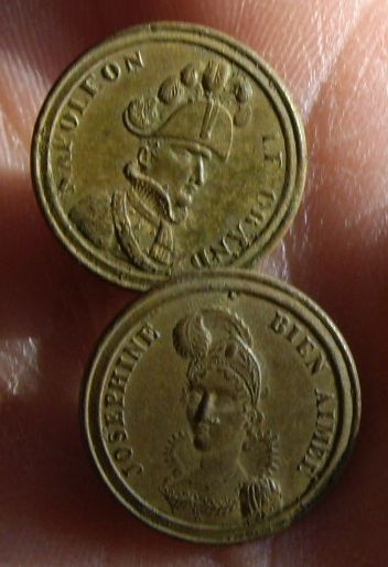 [1853] , a tous, j' ai trouvé ces boutons de cape dimanche derniers dans un labour, pouvez vous me les datés, merci a tous pour les infos, bonne journée.petit problème, j' ai réduit mes photos , je vais dans parcourir, mais je ne les retrouve pas, si quelqu un a une petite idée, merci.