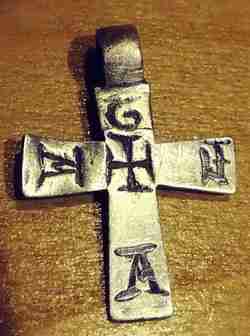 est-il possible de dater et de trouver une signification aux lettres de cette jolie croix en argent? Trouvée dans le Haut-Rhin.
