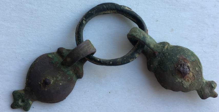 J'ai l'impression d'avoir un anneau central en bronze et 2 objets en cuivre accrochés !