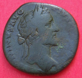 Sesterce d'Antonin le Pieux avec la Liberté au revers.
