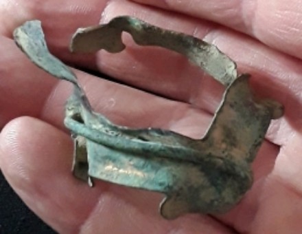 à la vue du long pontet visible en bas de l'objet en R0 ça me fait penser à une boucle de ceinturon dans le style fin XIX ou début XXème