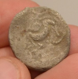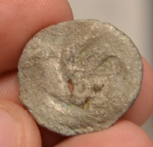 Voici une monnaie que j'avais prise pour un bout de plomb lors de sa sortie de terre.