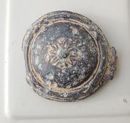 [1913] bonjour a tous , pourriez vous m'aider a comprendre l'utilité de ce bout de métal qui fait pensé a un couvercle, il fait environ 5 cm de diametre, lavers est creux , des reste d'attache en fer.