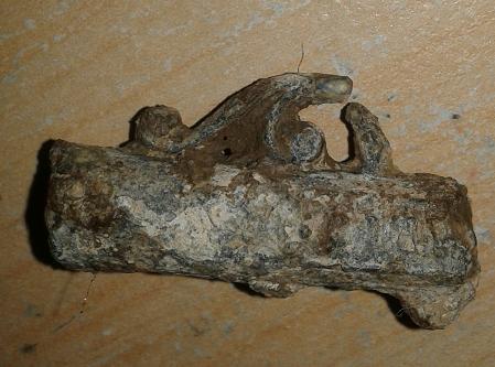 Ca me fait penser à un fragment de pistolet à amorçe ancien en plomb (jouet)