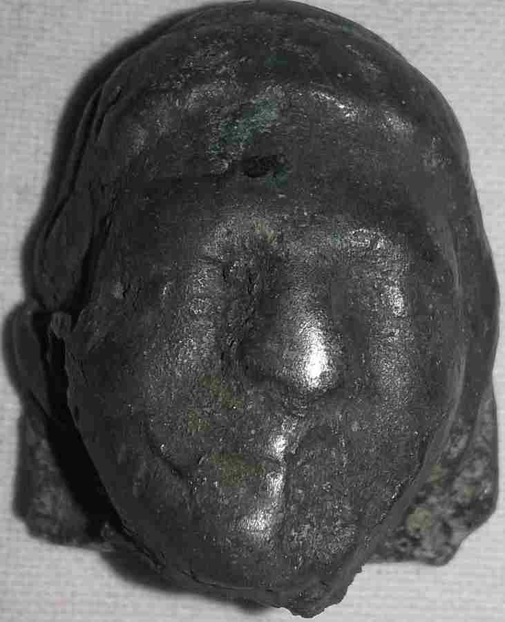 Difficile Ă  dater et surtout Ă  savoir ce que c'est. Tu dis '' dĂ©couverte de cette tĂȘte en mĂ©tal '' , pour sĂ»r au dĂ©tecteur ça ne va pas ĂȘtre autre chose.