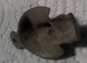 Je vous soumets cette tête de chein en bronze de 4 cm de hauteur pour 25 au plus large des oreilles. Il pèse 15 grs. C'est un moulage car l'intérieur est creux.