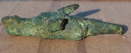 Voici une tête de loup ou de chien, longueur 3,5 cm, largeur 1 cm trouvé dans le secteur de l'Uzege - Gard