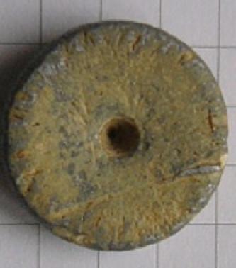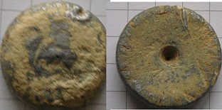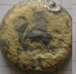 Je vais encore tenté d'enlever cette matière jaunâtre , rien à perdre mais je suis persuadé qu'il avait un motif et des lettres , donc je ne crois pas trop au lest d'autant plus que le trou a du servir à quelques chose et ne transperce pas la rondelle
