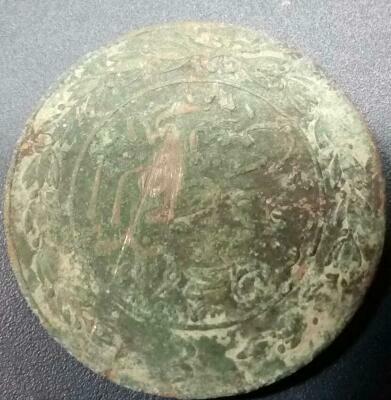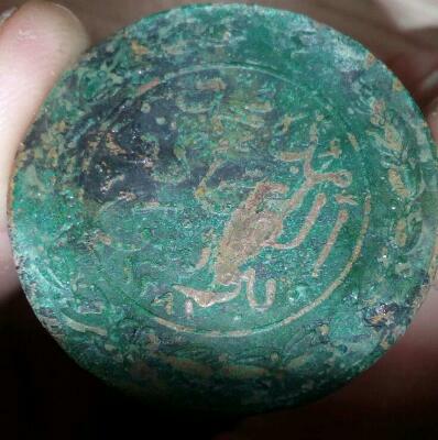 Cà avance bien vite ; pour être complet, sur la seconde face présentée , tout en bas se trouvent 4 petits signes . Ce sont des chiffres indiens qui nous disent ' 1281 ' , c'est-à -dire 1865 . Les arabes utilisent les chiffres indiens, et non les chiffres que nous appelons' arabe' . Pas facile......