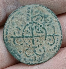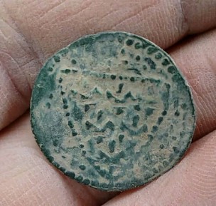 J'ai trouvé cette rondelle dans le 95. J'ai mis cette photo car je la trouve sympa avec encore un peu de terre. Je pense à un jeton en bronze.