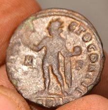 Sauf erreurs, voici un nummus de Constantin de 1.8 cm de diamètre.