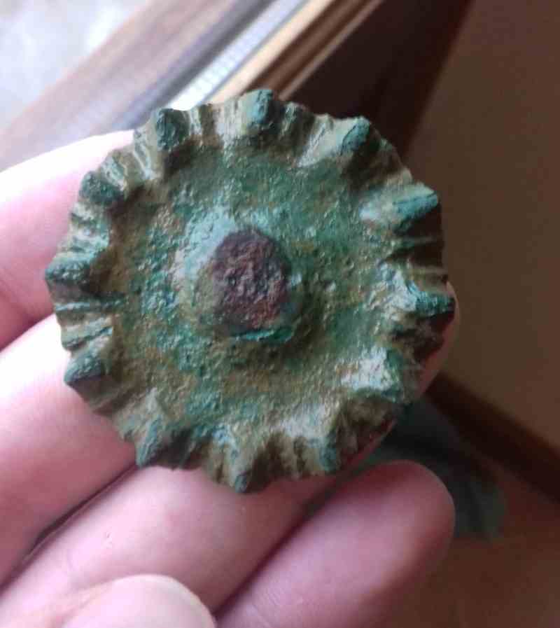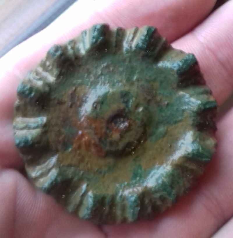 Je vous soumets ce soir cet objet trouvé dans ce weekend dans un champs du nord du Jura. J'ai cru à une fusaiole au début mais j'ai maintenant des doutes ... Il me semble être en bronze. Il mesure 4cm de diamètre et pèse 30 grammes.