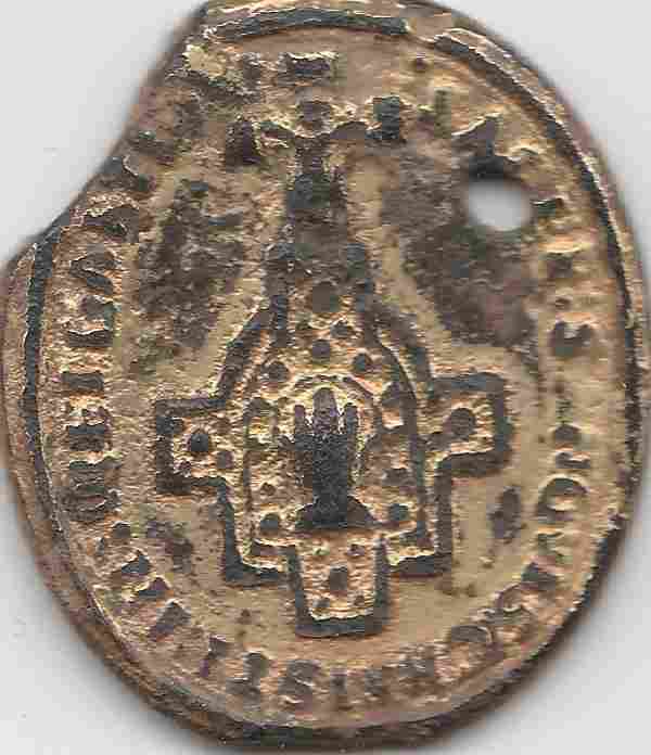 Je n'ai jamais vu ce revers , je pense à une relique , serait ce une représentation de la Sainte Chemise ?