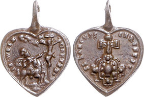 [683] j ai trouve cette medaille en foret ,est il possible de l identifier elle mesure 3cm et je vois un homme a cheval avec une lance et le christ en face sur la croix