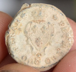 [1913] glané....il s'agit d'un plomb de la Compagnie des Indes Orientales créée par Colbert en 1664. Plomb utilisé de 1749 à 1769. La compagnie des Indes avait pour devise : 'Florebo Quocumque Ferar' c'est-à-dire 'Je fleurirai là où je serai portée' . Basée à Lorient, port créé également par Colbert en 1666, la compagnie a décliné notamment après une compétiton frontale avec les anglais et la perte progressive de nos colonies à partir de 1763 après le traité de Paris