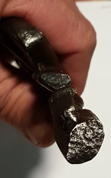 La partie terminale ne semble pas cassée , elle semble légèrement travaillée . Cet objet serait donc entier .