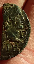 '' Ces demi As de Nîmes ont certainement été coupés en deux pour faire face à la pénurie de monnaies divisionnaires à l'époque où ils circulaient. Ces monnaies coloniales romaines, avec leur avers simétrique aux deux têtes se prêtaient particulièrement bien à cette opération de découpe. C'est aussi le cas des As de Vienne ou des As italique au type du Janus bifrons.''