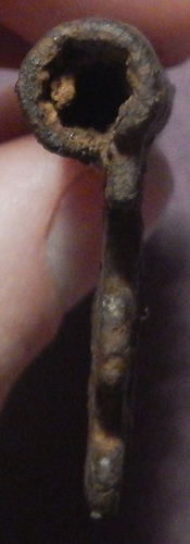 Oui super état pour cette belle clef. De la série des seules clefs de l'histoire faites à la forge je crois, si tu regardes bien, le tube est 'enroulé' le trait de raccordement est en dessous et l'anneau est aussi cintré pour être refermé.