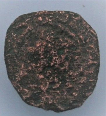 La chose à l'air assez informe, alors je frotte...désespérément jusqu'au métal Tout - cuivre rouge- et à lire soit .....VIII..... ou à l'envers.... ULA.....cette monnaie inconnue avec aussi peu de détails évoque t'elle quelque chose parmi vous ?