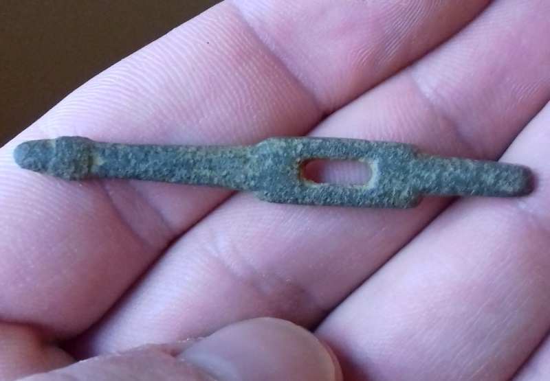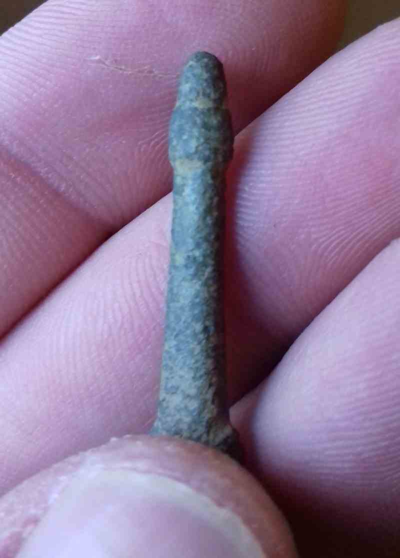 Il mesure 5 cm de long et 0.7cm au plus large. Il pèse 3.70 grammes. Il semble être en bronze.