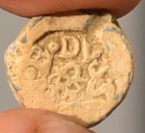 'Plomb de scelle d’un soyeux de la ville d’Uzes (nom au-dessus des armoiries de la ville) au revers on trouvait son prenom et nom (ici peu lisible …E. DVSS…).