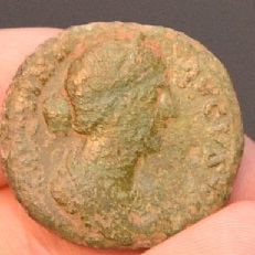 Voici une monnaie de Faustine de 2.3 cm de diamètre (Type dupondius ou as).