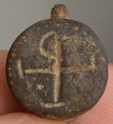Voici un petite bague que j'imagine être de la fin de l'empire romain puisque le symbole ressemble au chrisme visible sur les monnaies de Décence, Magnence ou Constantin.