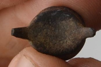 L'objet mesure 1.3cm de diamètre et semble en cuivre