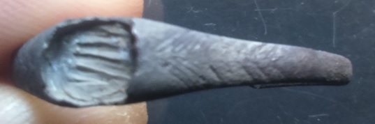 Je sais que les bagues ne sont pas toujours évidentes à identifier, je comprends bien pourquoi mais celle-ci m'intrigue car elle diffère de par son aspect des autres que j'ai pu trouver jusqu'à maintenant. Elle est malheureusement en mauvais état et a perdu sa pierre...