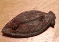 Il est en cuivre ou bronze et mesure 2.3cm de long pour 1.5cm de largeur.