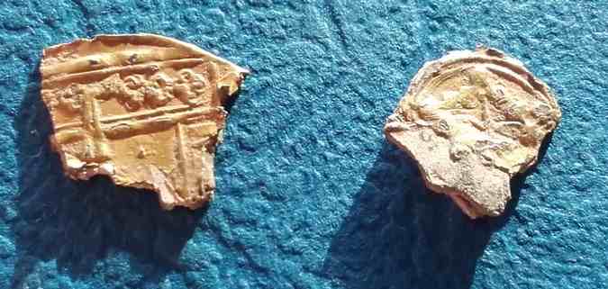 On distingue bien la couche d'or qui s'écaille avec un travail de gravure assez fin.