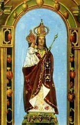 Je me demande si la Vierge à l'enfant ne serait pas Notre Dame de Laghet près de Nice (pèlerinage depuis le XVII è siècle) l'enfant Jésus tient un globe crucifère et la Vierge un ' sceptre'