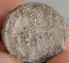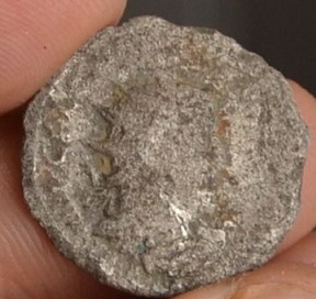 Voici une monnaie romaine en billon abimée (pour ne pas dire dévastée).