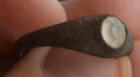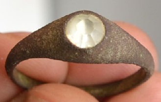 Elle est en cuivre 2.4 cm de diamètre pour la bague 0.6cm pour la pierre.