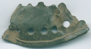 Bonjour, qui aurait une idée pour ce fragment de tôle de bronze (fine) 1,2mm