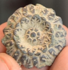 Voici une fleur de 2.7 cm de diamètre en cuivre.