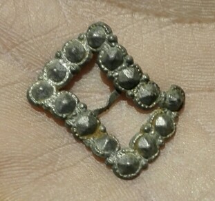Ne serait ce pas une boucle de ceinture strass .Les femmes mettaient autour de leur robe cette ceinture avec ce genre de boucle lègère plus décorative qu'utilitaire