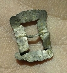 Voici une trouvaille d'un ami qui souhaite identifié et daté cette petite boucle, d'un métal assez malléable. Elle mesure environ 1 cm de longueur.