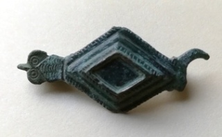 Fibule losangique à croissant de lune et tête de reptile à grand cabochon ( qui etait émaillé ).