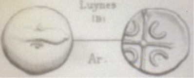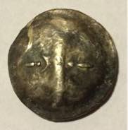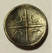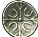Voici ce que je pense être une drachme lourde trouvée aujourd'hui dans un champ du Tarn (81). Le côté concave représente une croix bouletée en son centre ainsi que quatre croissants disposés de manière symétrique. Le côté convexe présente une ligne épaisse et atténuée et de part et d'autre de petits motifs (petites lignes, points et croissant). On remarque aussi un point à la base de la ligne (peu visible sur la photo). Malgré mes recherches je n'arrive pas à trouver exactement la même sur le net... si vous avez des idées je vous en remerci !!!