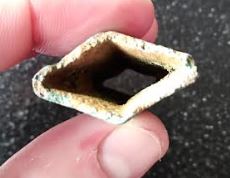 Une demande d'id après une petite sortie hier après midi. Il s'agit d'un objet fortuité en forêt. Il mesure 6 cm et pèse 24gr. Il est en bronze? L'objet semble cassé aux deux extrémités. Il est creux (forme losangique) et effilé.