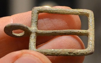 C'est un passant à double fenêtre de ceinture ou de baudrier avec anneau de suspension datés XVIè-XVIIè s. (merci à 'L'Histoire en boucles'...).