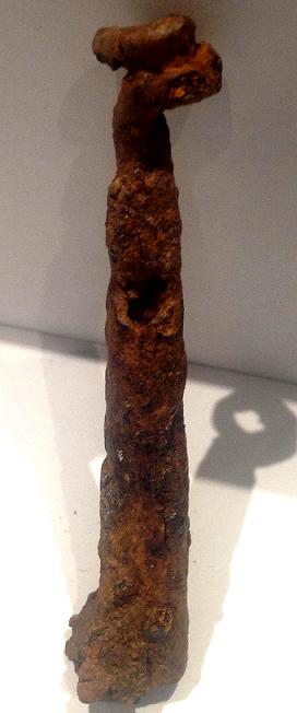 C'est un objet en fer de 7 cms de long de forme conique creux, une extrémité creuse l'autre en forme de tire-bouchon. Il y a une petite ouverture sur le coté partie supérieure.
