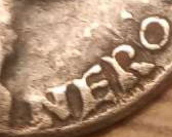 [269] Sur l'avers : concrétion semblant marron cuivreuse dans le R de Nero