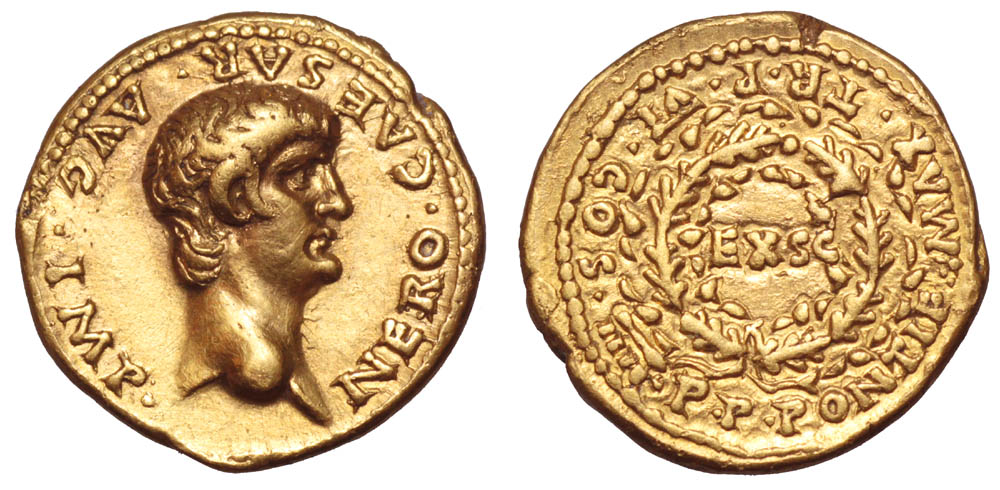Avers : NERO CAESAR AVG IMP : sa tête, nue, à dr.