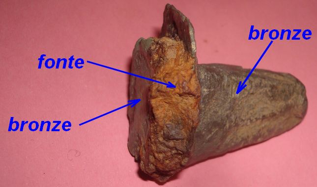 Ah oui, ça y est, je comprend, c'était une réparation d'une patte cassée d'une marmite en fonte, un échange standard en bronze et matée de l'intérieur pour que ça tienne.